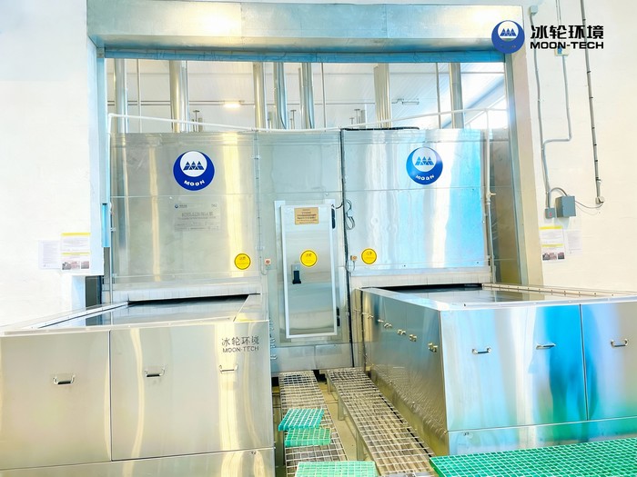 • Plate freezing system (-40°C) featuring five plate freezers and screw compressor packages
